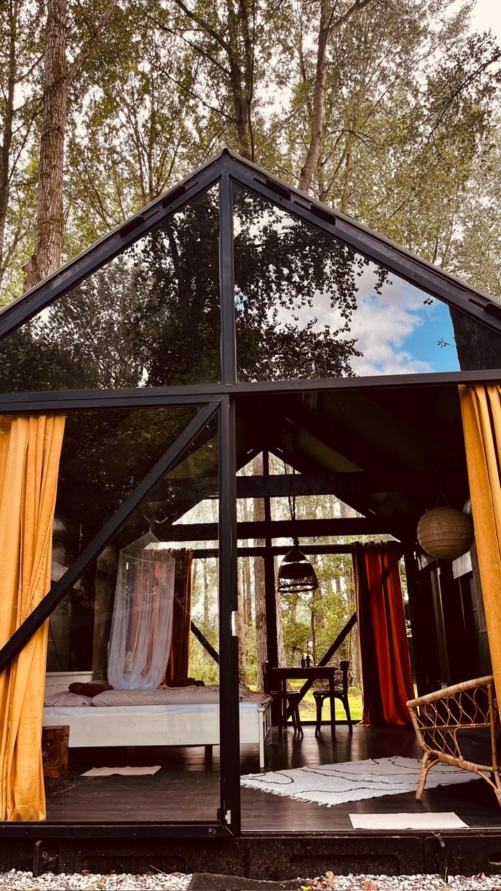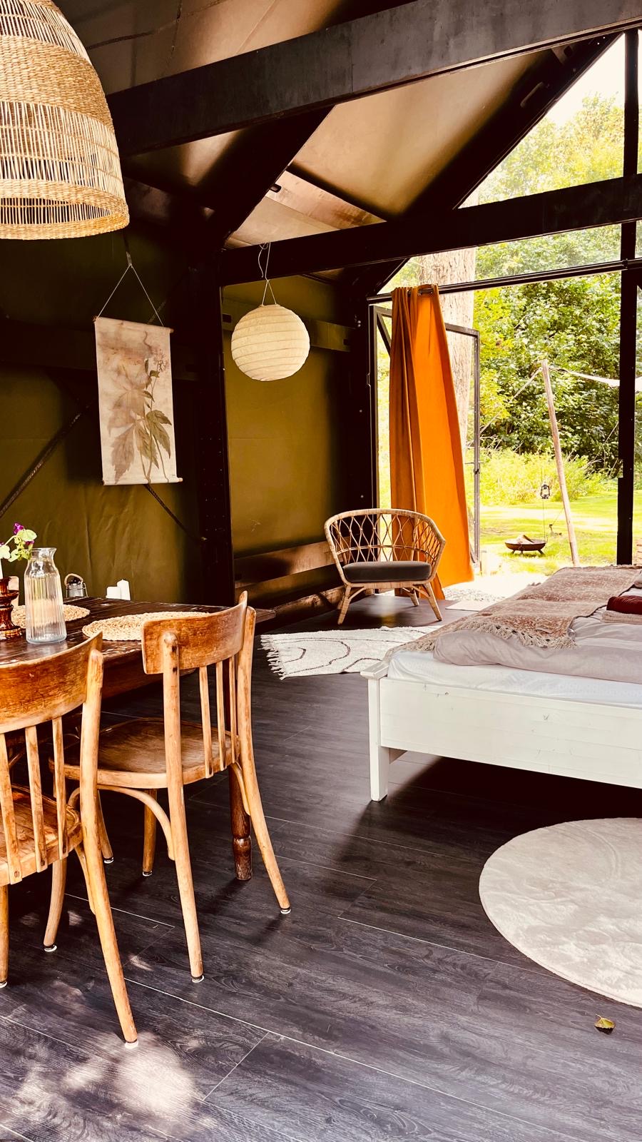 Inmiddels is dit de derde telg uit de For-rest kamer familie. Na het succes van de eerste twee hebben we besloten om nog zo’n fijn tent huisje te plaatsen met aan beide kanten die grote open deuren.